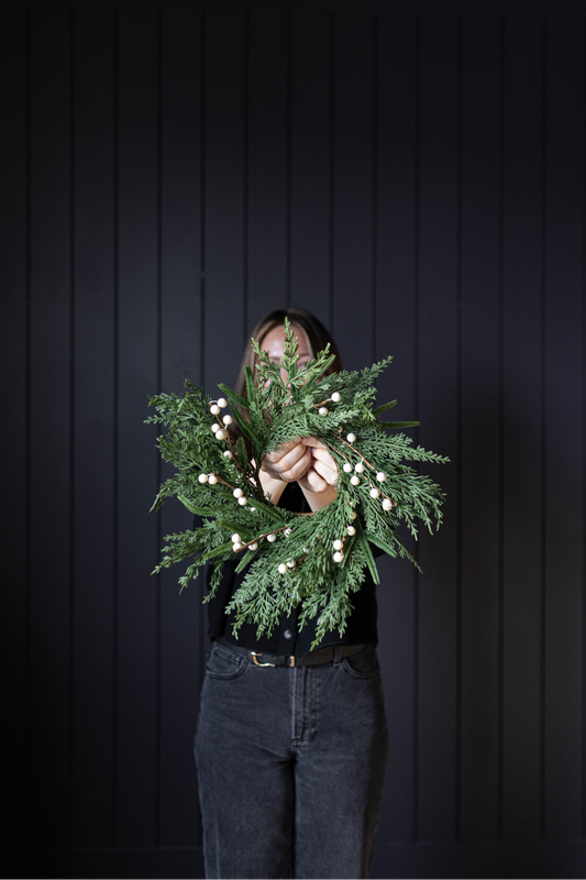 White Plum Berry Norfolk Cypress Real Touch Wreath - 14"