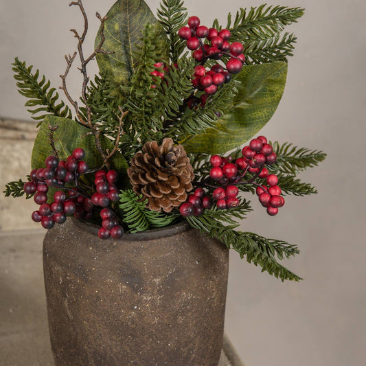 16" CEDAR & MAGNOLIA LEAF W/ RED BERRY PICK