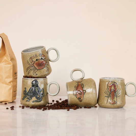 3-3/4" Rd 14 oz. Stoneware Mug w Animal Print