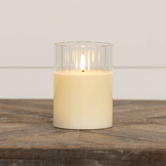 5" CREAM FLUTED GLASS 3D FLAME CANDLE