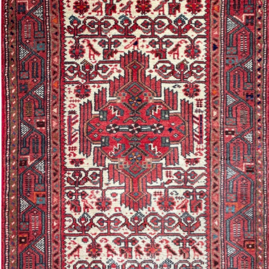 Tajabad Semi-Antique Medallion Red Wool Hand Knotted Runner Persian