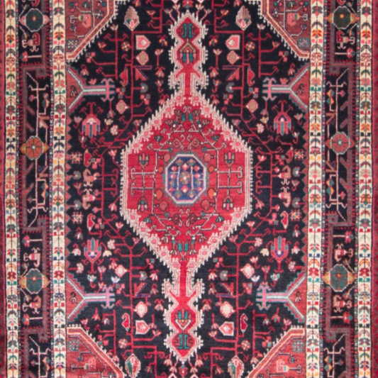 Toyserkan Semi-Antique Medallion Blue Wool Hand Knotted 5'1" x 9'1"