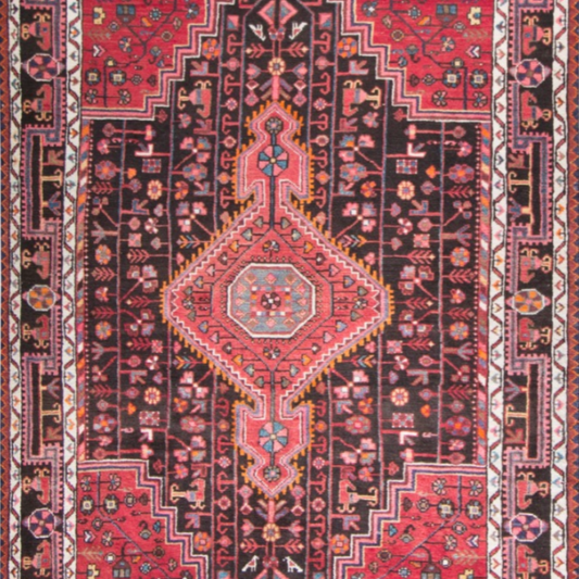 Zanjan Semi-Antique Medallion Red Wool Hand Knotted 2'6" x 4'2"