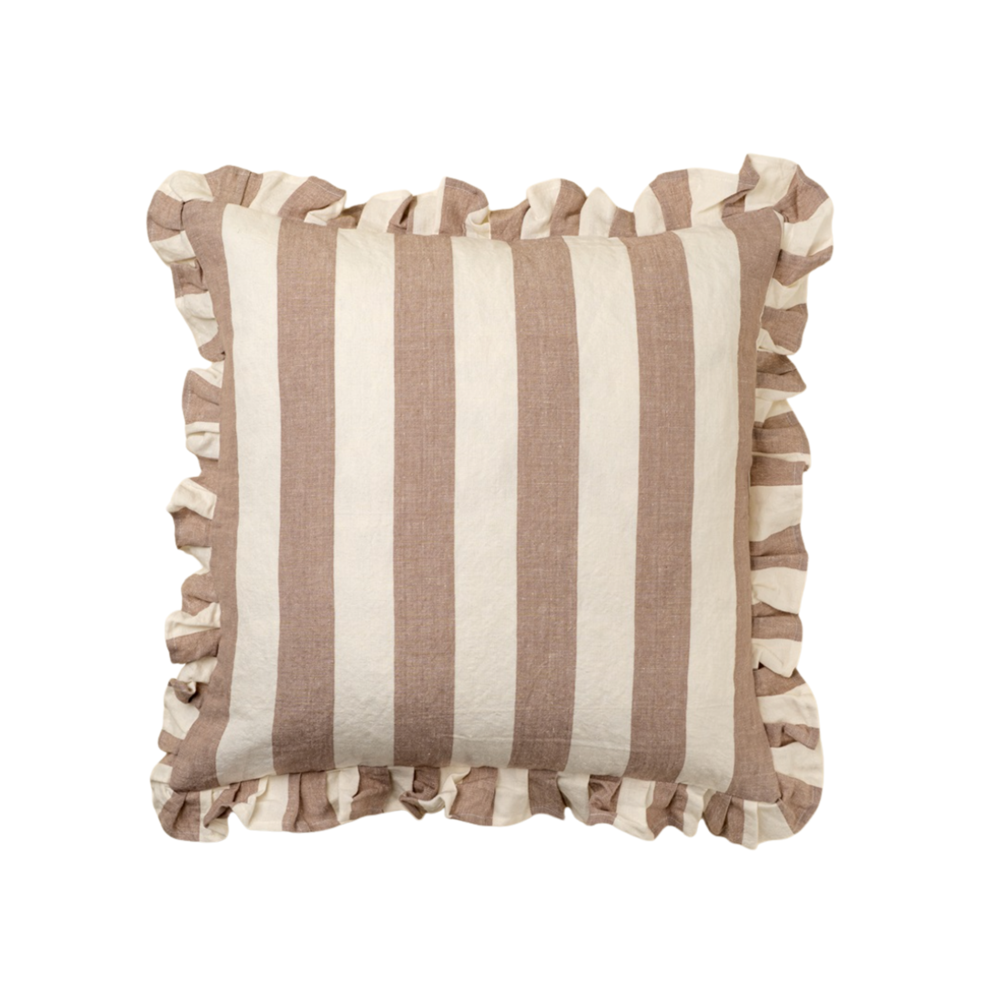 Add a playful yet polished accent to your home with the Ruffle Thick Stripe Pillow. Handmade from a 50% linen, 50% cotton blend, this pillow pairs classic stripes with a soft ruffle border for a timeless French cottage feel. Wide, neutral stripes bring relaxed elegance, while the ruffled trim adds a cozy touch to your bedroom or living room decor.