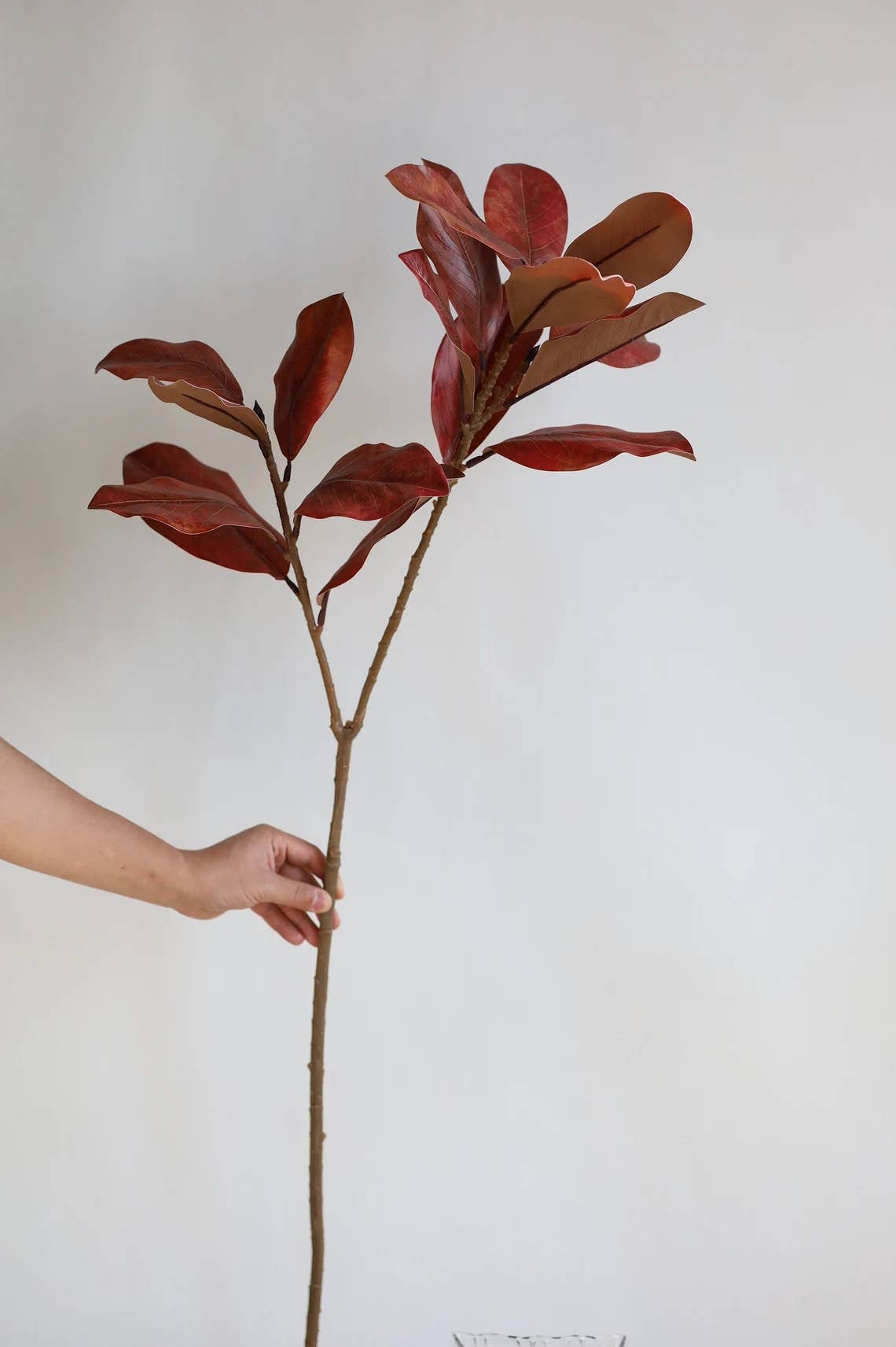 This 42-inch magnolia stem has generous leaves with a soft, realistic texture and gentle movement. Each one is slightly varied in tone, echoing the look of real magnolia foliage. Whether placed alone in a tall vase, added to garlands, or mixed into a larger arrangement, it brings a natural, sculptural presence to any room.