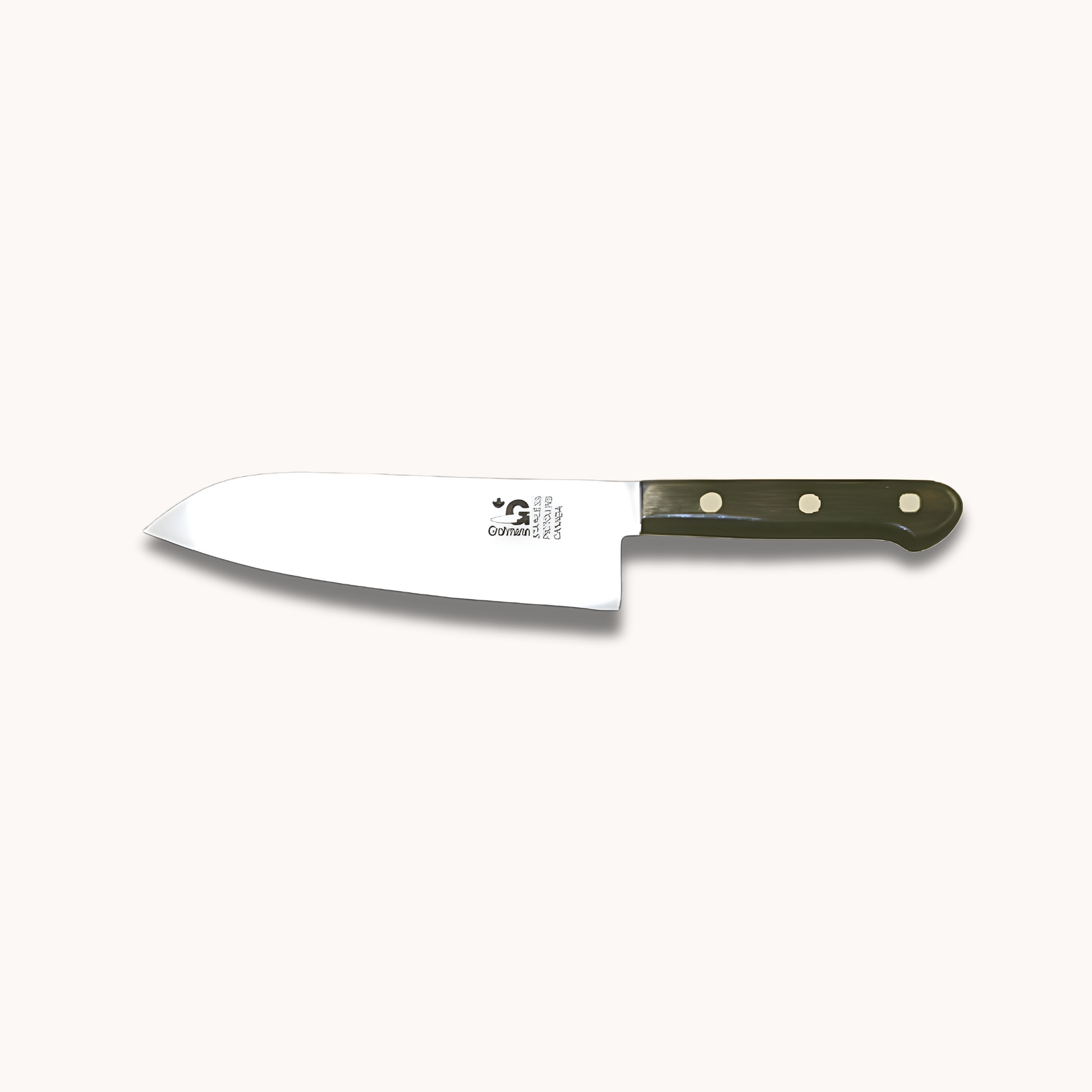 Designed with a 6-inch straight-edge blade and a slightly smaller rosewood handle for a comfortable grip, this 132-gram Santoku-style knife excels at chopping, slicing, and dicing vegetables, meats, and poultry. With an overall length of 11 inches, its full-tang construction provides durable strength, balance, and a medium-weight feel for precise, confident cutting.