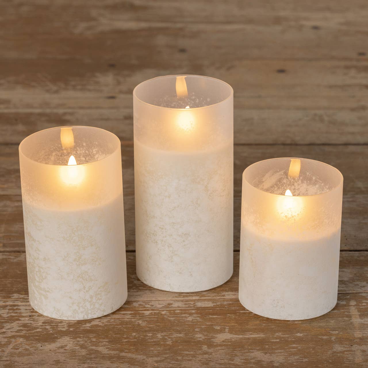 6" WHITE FROSTED GLASS 3D FLAME CANDLE