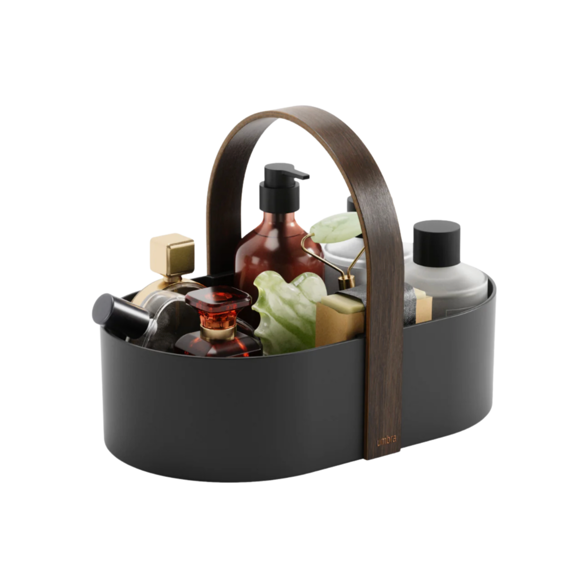 Organize your everyday essentials with Bellwood Caddy. This versatile storage solution can be used for makeup, skincare, craft supplies, stationery and more. Easy to clean, Bellwood Caddy provides easy access with an integrated handle if you need to bring it with you on the go. Its removable divider makes it easy to organize and keep products upright, while its rubber feet protect your surfaces from damage. This modern caddy is part of the Bellwood Collection including Bellwood Organizer, Storage/Planter, Coffee Table, Wall Shelf, Freestanding Shelves and more! ♻️ Made with recycled plastic and comes from renewable wood sources. Wood is a unique natural material with variations in tone, texture, and grain. The product may vary from our imagery. ⓘ For Best Care: wipe with a clean damp cloth