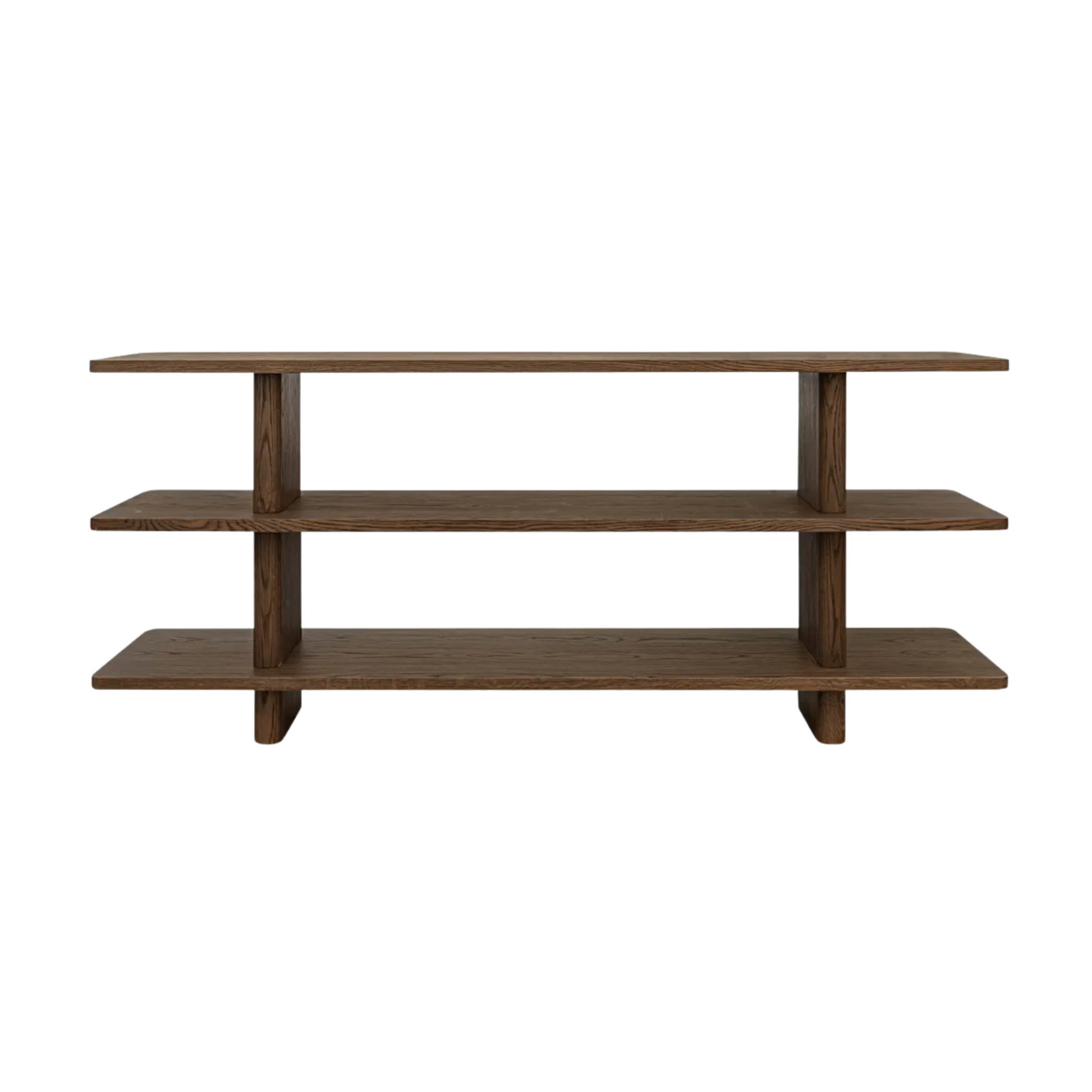 The Casey bookcase embodies contemporary elegance, marrying form and function with understated sophistication. An innovative vertical support with a bullnose edge softens the silhouette, introducing an organic feel to the rectangular shelving.