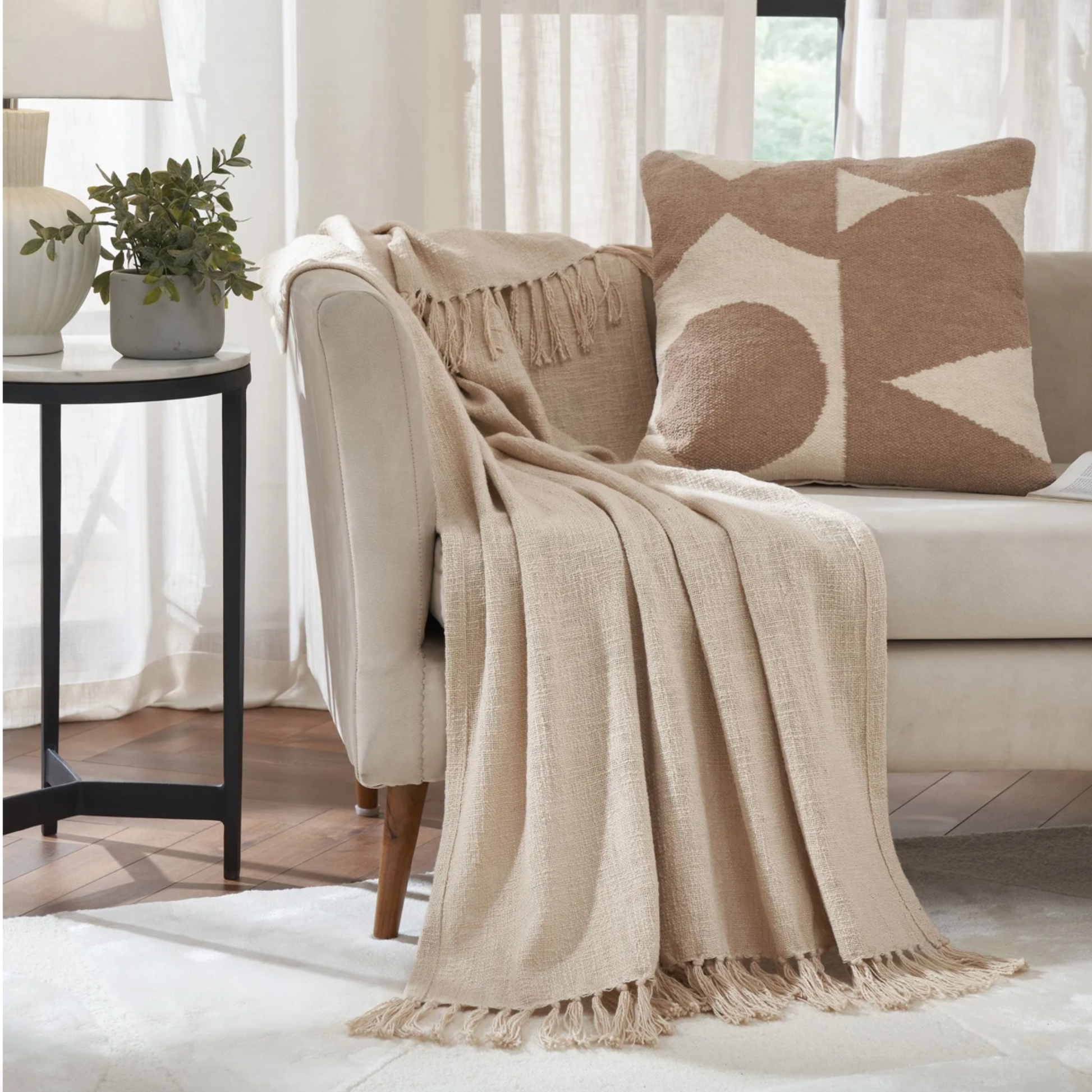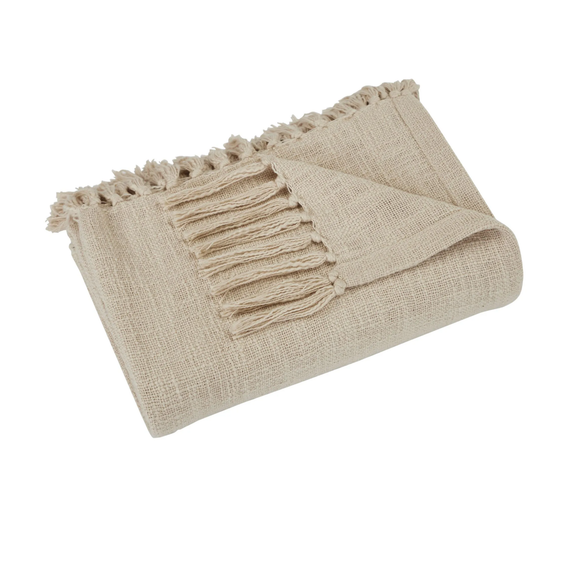 When it comes to bed throws or sofa throws, one should never sacrifice comfort for style. The Curtis throw proves you can have both. Woven from 100% cotton, this beige-hued blanket features a luxurious texture and eye-catching fringed trim for visual interest. Even when it’s not in use, this accessory adds beauty and dimension to any space. Throw it casually over a sofa or lay it at the foot of a bed to create a stylish layered look. Once you discover the relaxed vibe and cozy feel of this blanket, you may want to pick one up for every room.