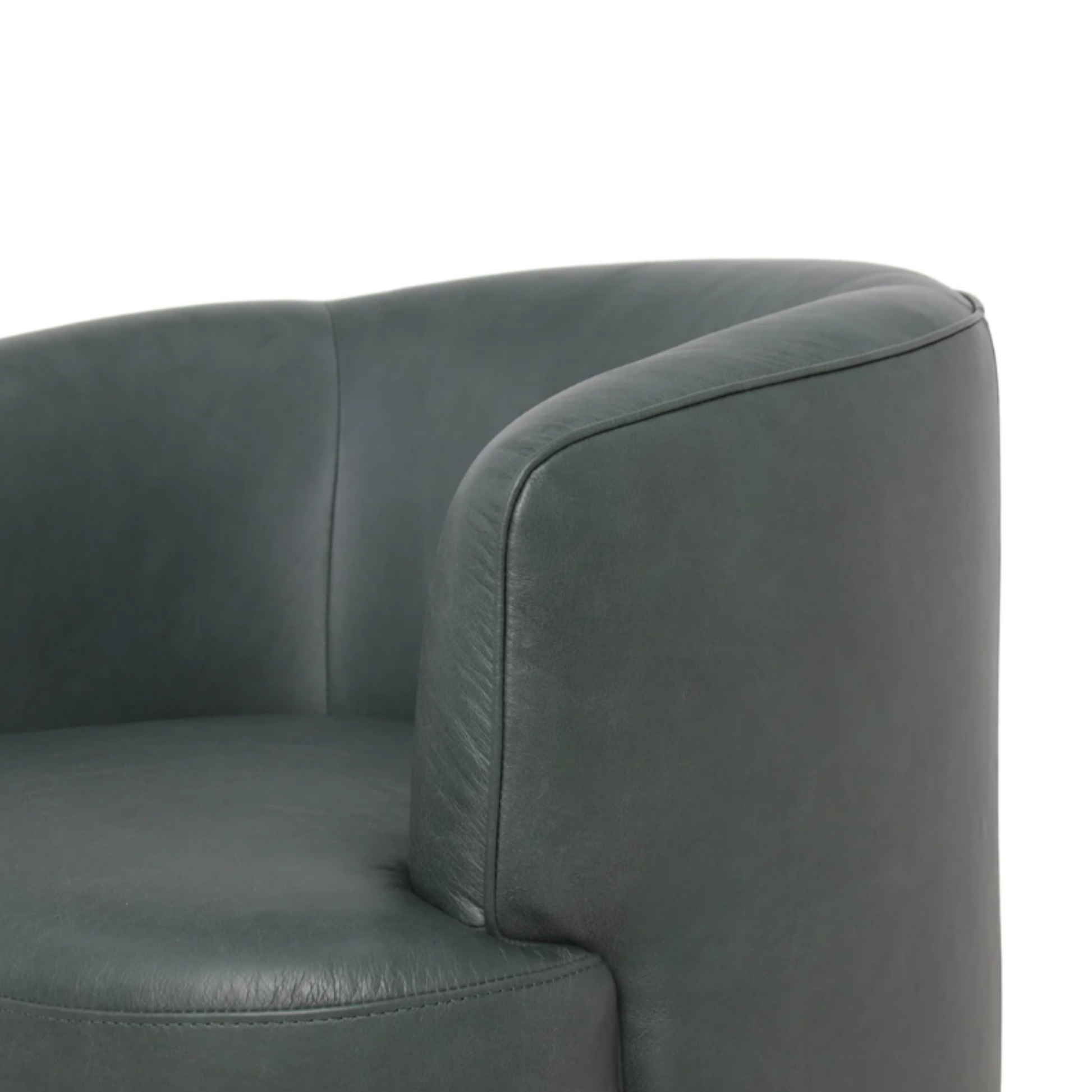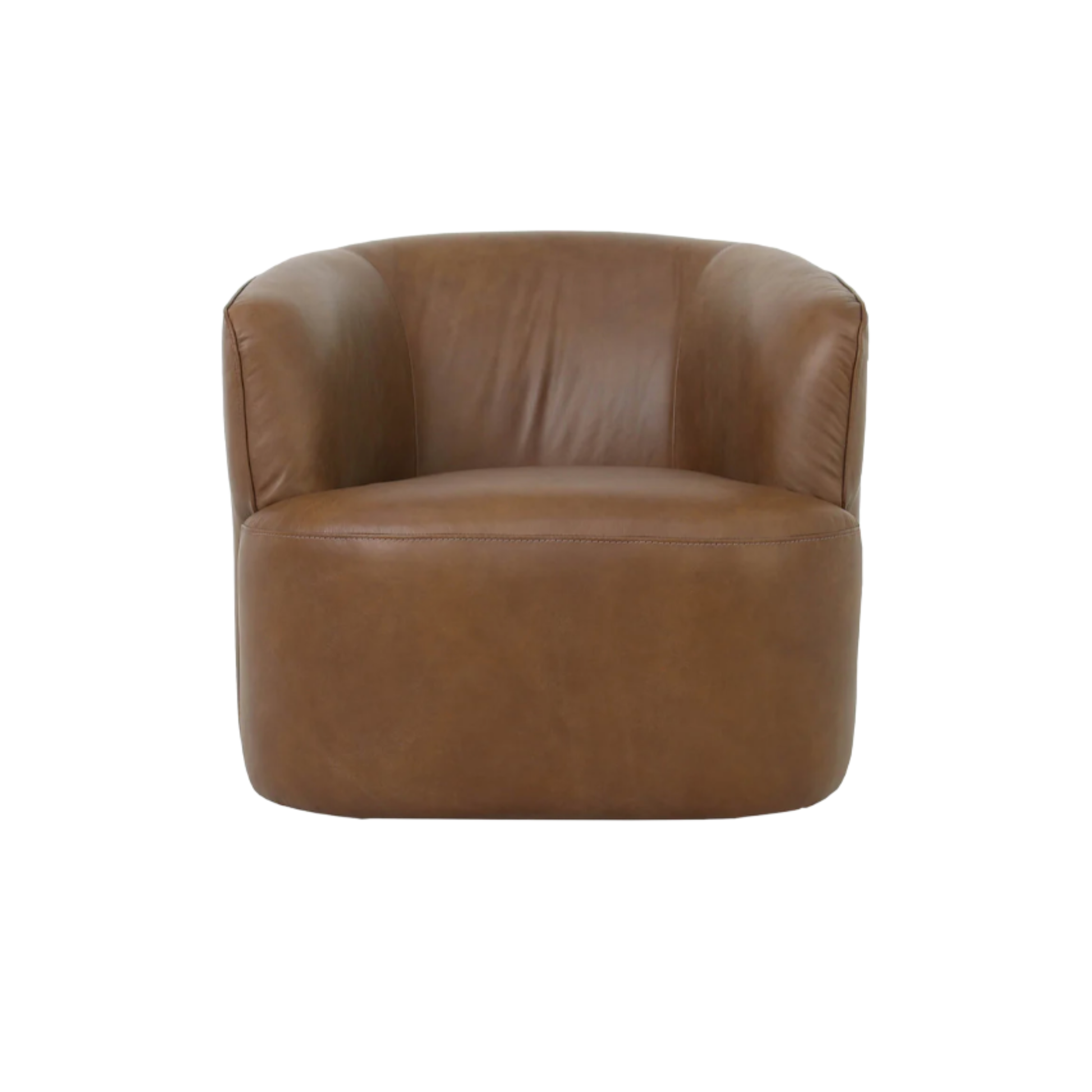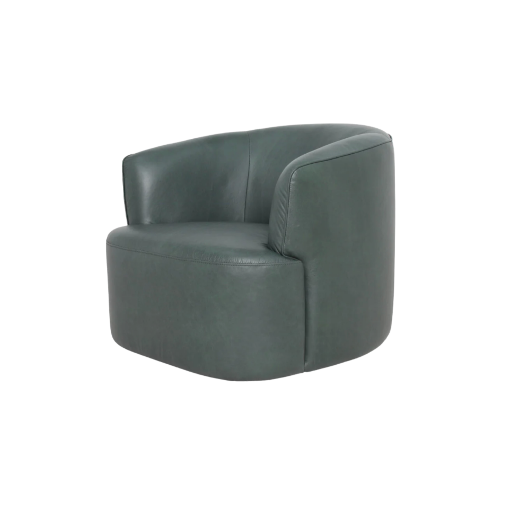 Upholstered in full-grain leather with a choice of deep moss or antique sienna, this swivel chair balances bold color with comfort. The 360° base allows smooth rotation, making it adaptable across seating layouts.