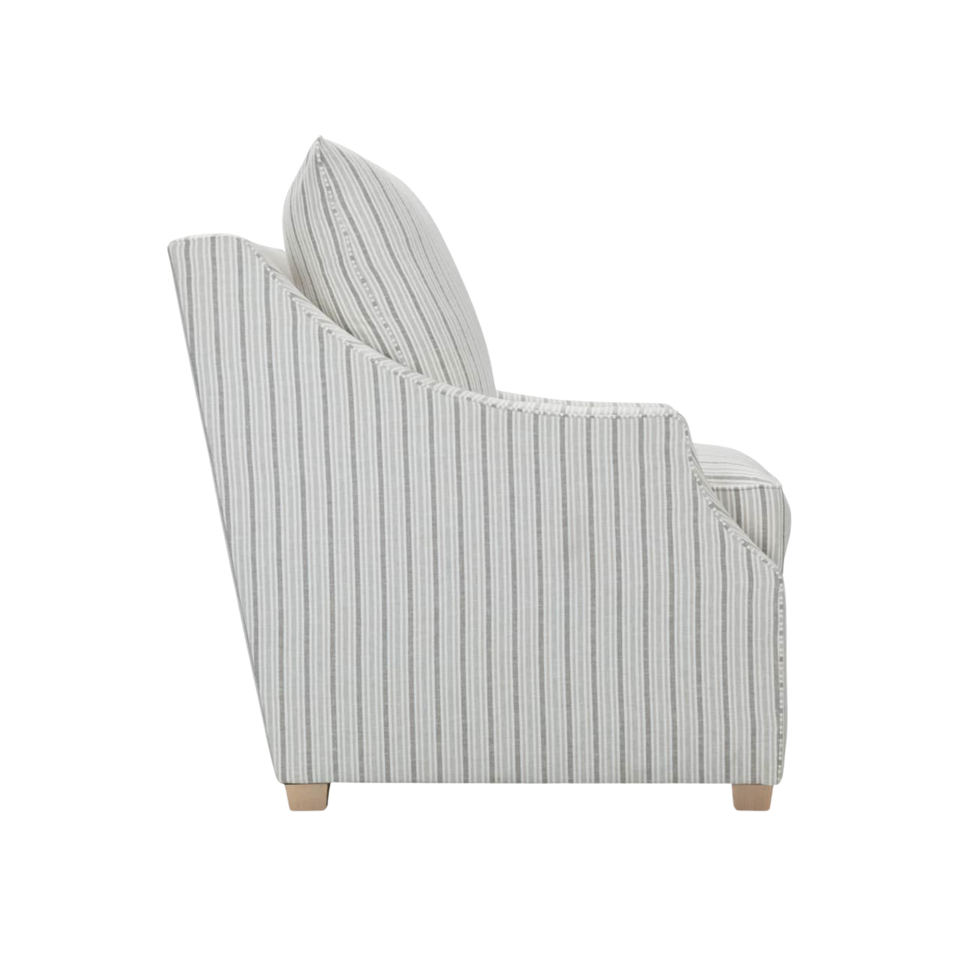 The Rowe Kori Recliner is a stylish and comfortable chair designed to complement various living spaces. Crafted with a solid hardwood frame, it ensures durability and longevity. The seat and back cushions are feather-wrapped, providing a plush and inviting seating experience.