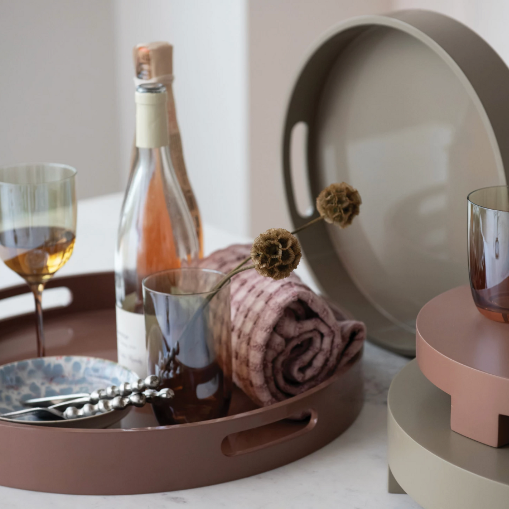 MDF Lacquered Trays w/ Handles, Set of 2