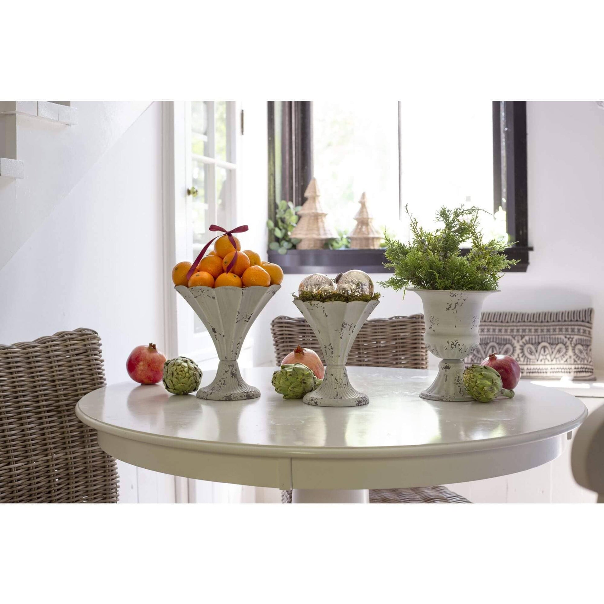This medium-sized metal fluted vase in an antique white finish adds a refined, vintage touch to any room. The elegant fluted design, paired with the soft, weathered white hue, creates a charming rustic aesthetic. Ideal for showcasing flowers, greenery, or standing alone as a decorative accent, this vase effortlessly complements a variety of interior styles, from classic to contemporary.