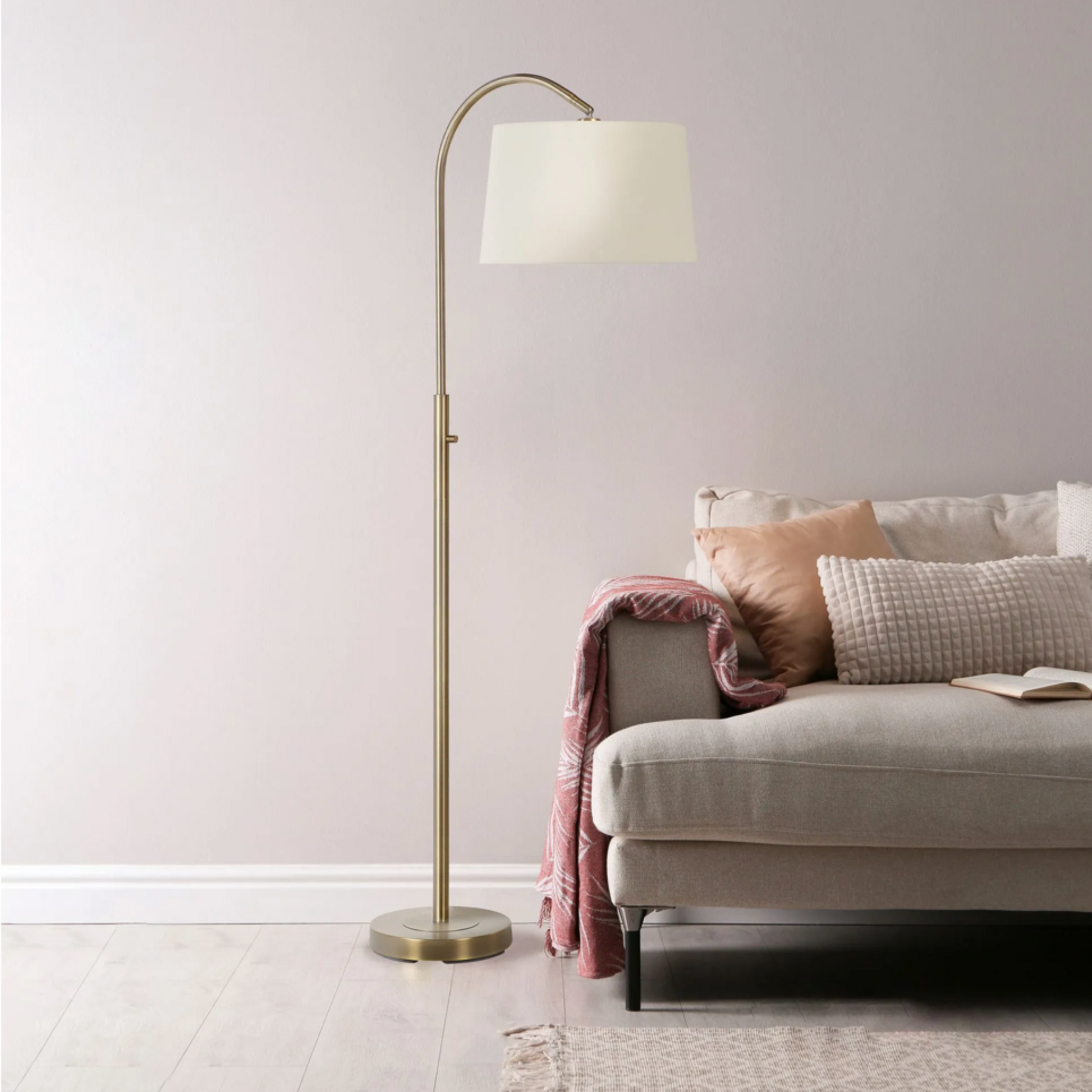 Fans of traditional style will fall in love with the Moulton floor lamp. Designed with simple lines, this lamp blends seamlessly into so many decorating schemes, while making a stylish statement. Dark antique brushed brash joins forces with a richly textured linen tapered drum shade to deliver light and visual interest to any home. More than just another great looking lamp, a swivel shade makes it a perfect pick for a reading nook, next to a sofa or any room that craves illumination.