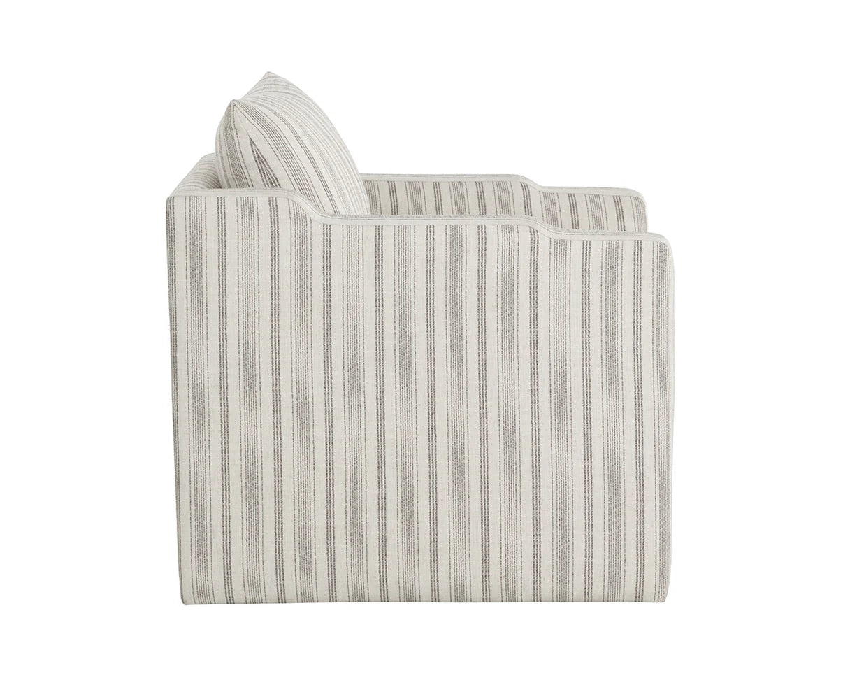 A sleek take on contemporary techniques, the Roosevelt Swivel Lounge Chair is a clean and minimal elevation of beach house design. Upholstered in gifford script linen fabric, and with a polyurethane foam and feather-fill back and seat, this armchair is as handsome as it is comfortable.