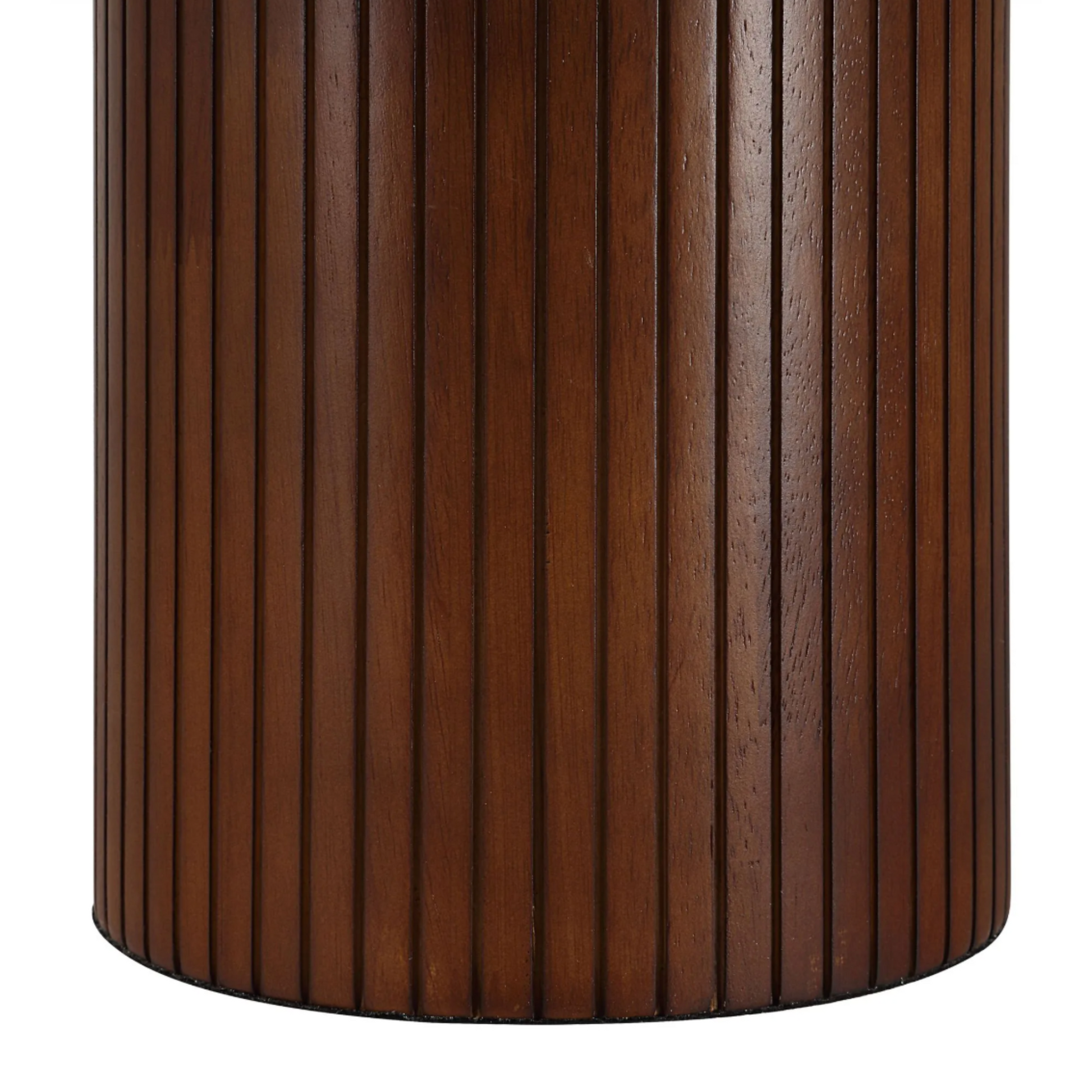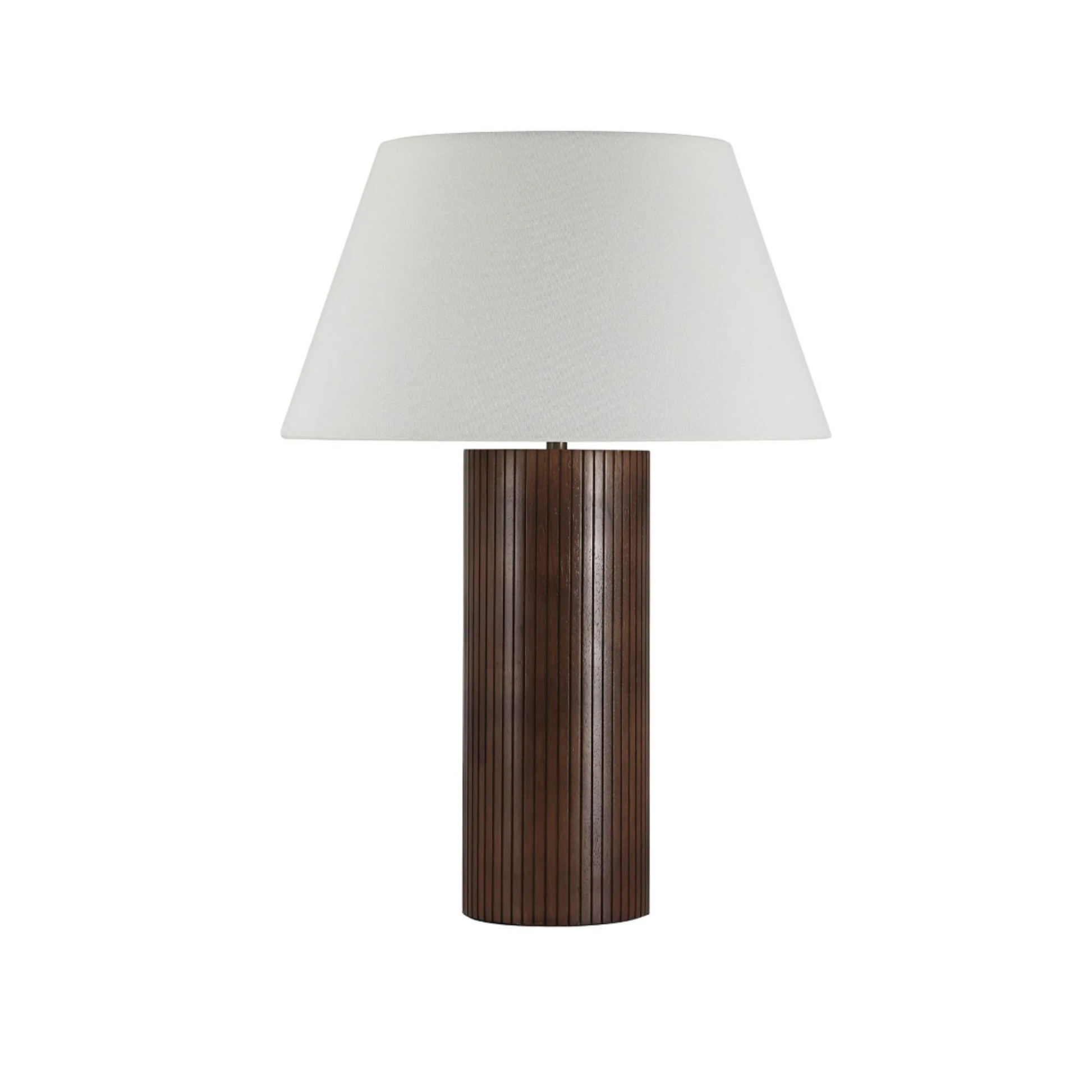 Combining the drama of warm walnut wood and the purity of ivory linen, this table lamp balances dark and light to create the kind of visual interest that suits both contemporary and transitional interiors. Featured on a console, buffet or end table, its enduring style will leave a lasting impression while elevating any space.