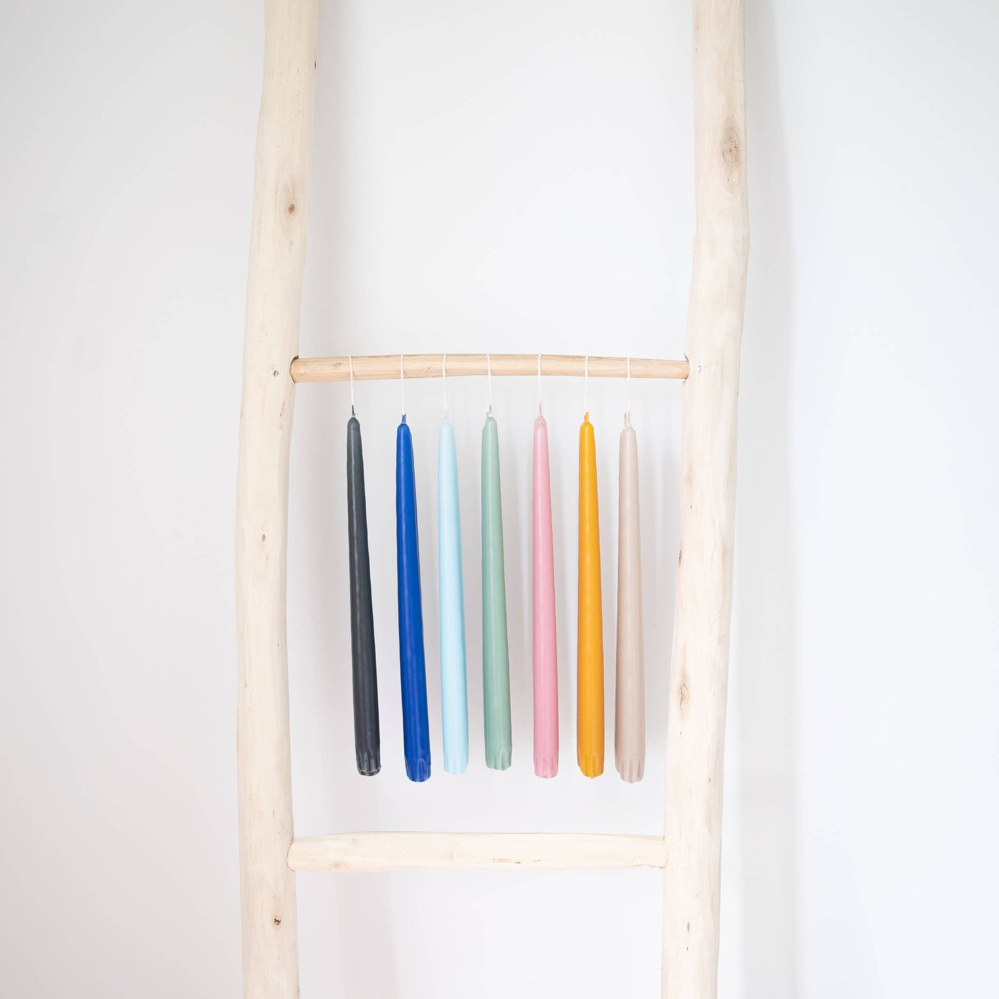 Our taper candles are handcrafted and handover-dipped for a superior depth of color. The interior of the candles remain white ensuring a clean and dripless burning that lasts approximately 11 hours.