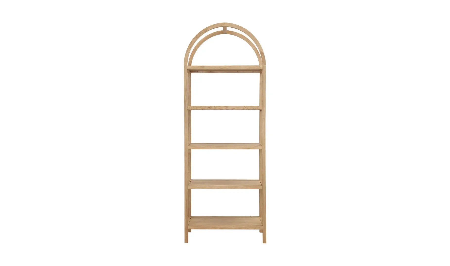 An artistic blend of style and sturdiness, the Eero bookcase features a solid oak frame with oak-veneered shelves ready to display cherished books, keepsakes, and collectibles. Its natural finish engenders organic sophistication, while the arch support is a testament to exquisite architectural design.