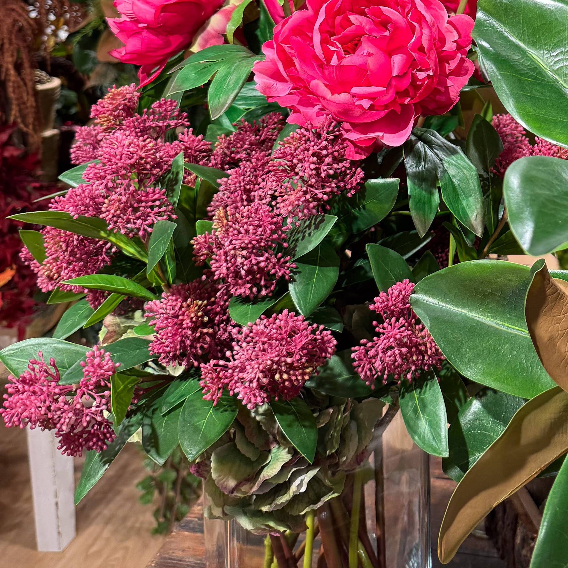 Enhance any floral arrangement with this 21-inch Mauve Viburnum Seed Stem. Featuring clusters of delicate faux viburnum seeds in a soft mauve hue, this stem brings depth and texture to any setting. The lifelike green leaves and sturdy stem make it a versatile accent for vases, centerpieces, or mixed bouquets. With its rich color and natural appearance, this piece adds a refined touch that complements both seasonal and everyday decor.
